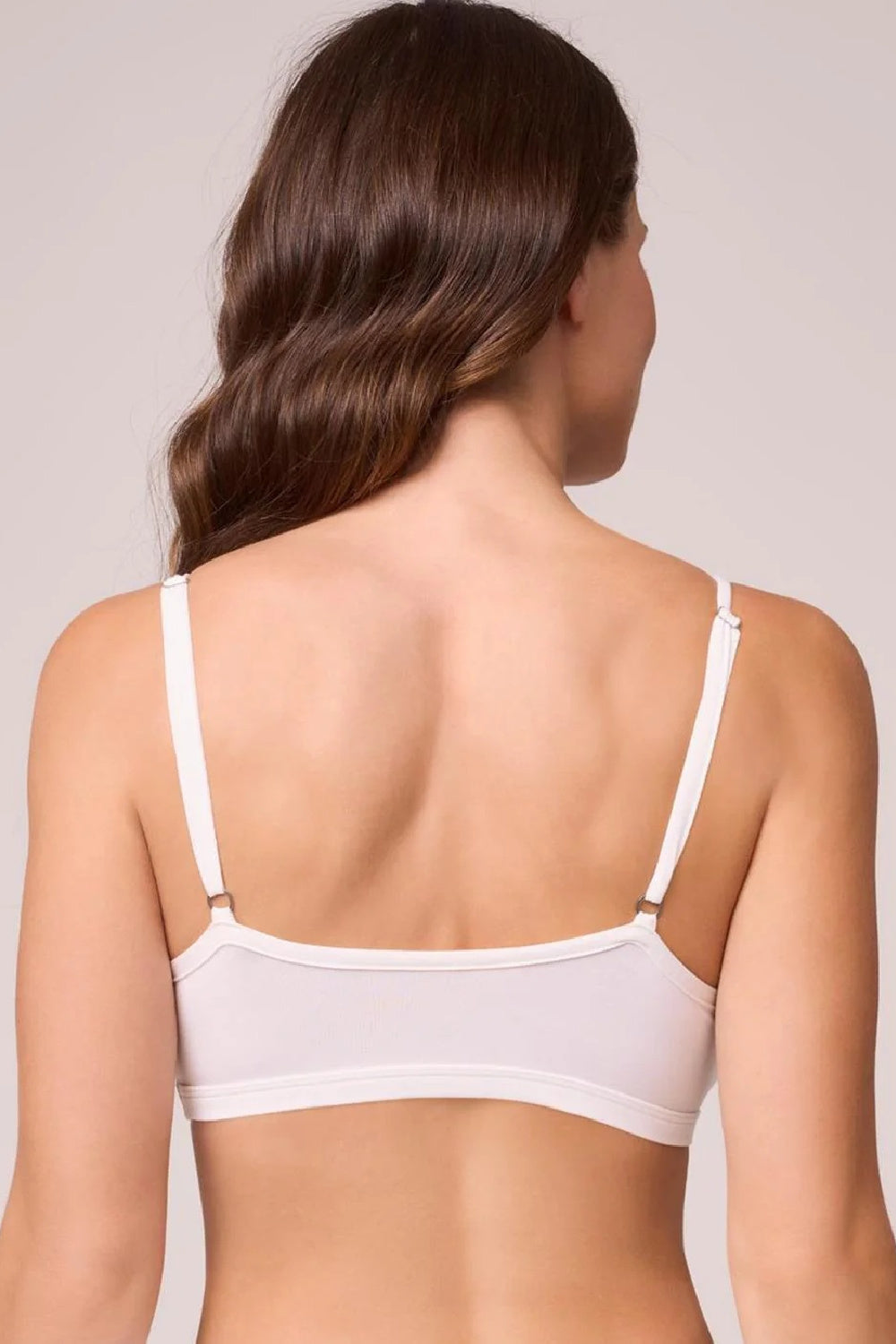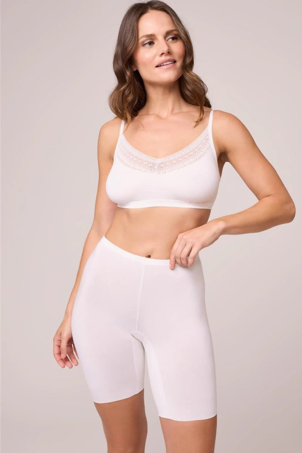 Eco-friendly modal meets delicate lace in this versatile Montelle Body Bliss bralette in ivory. Wear it as a sleep bra or for just a little extra coverage when you need it. It’s ultra-soft, effortless, and slightly magical.
