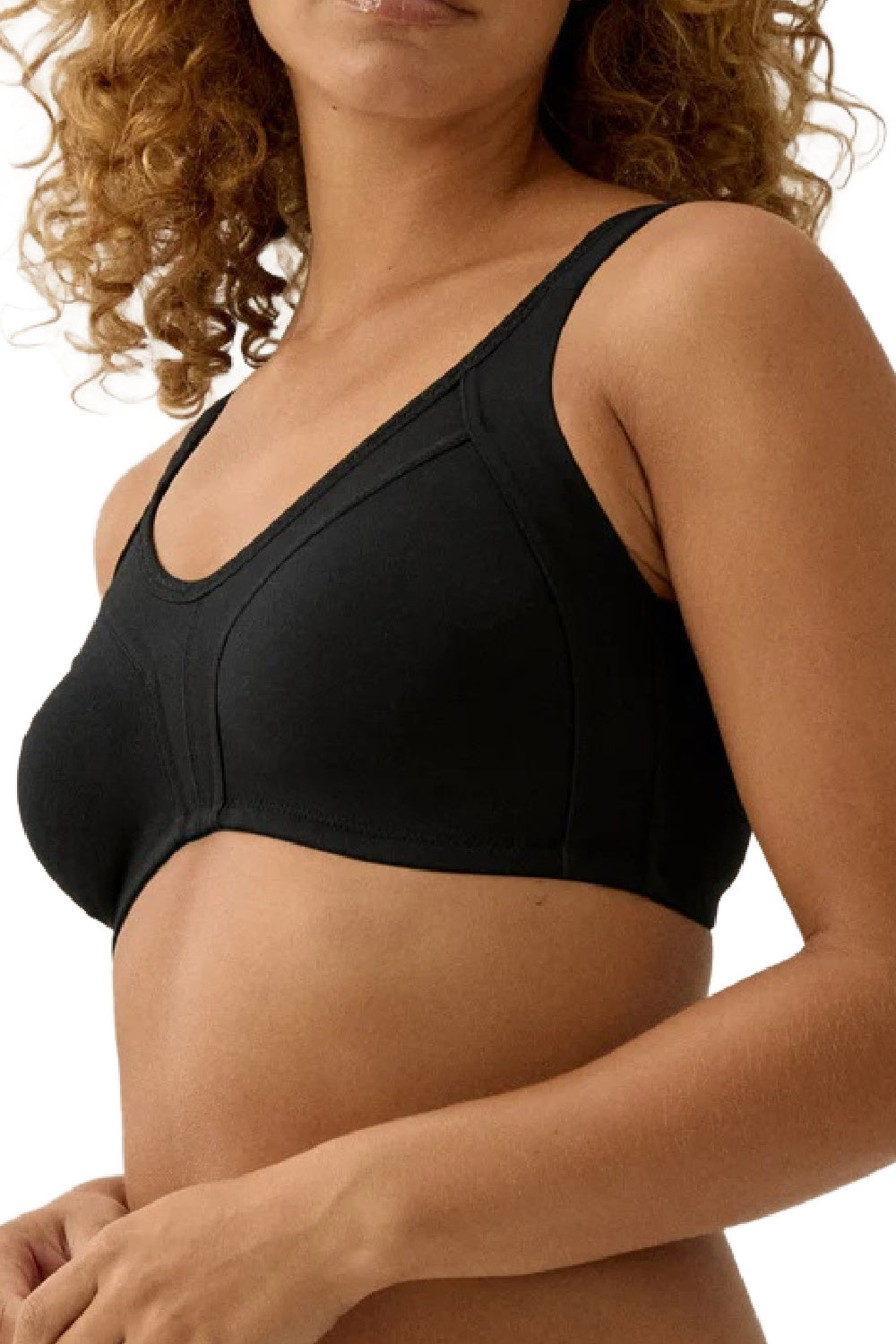Naturana Heritage Minimizer and Side Smoother Wireless 90% Cotton Bra in Black for everyone who appreciates a secure hold. This bra was developed so that you feel safe and comfortable with every movement and can concentrate on the important things in everyday life. Because Naturana cares about the comfort of your bra.