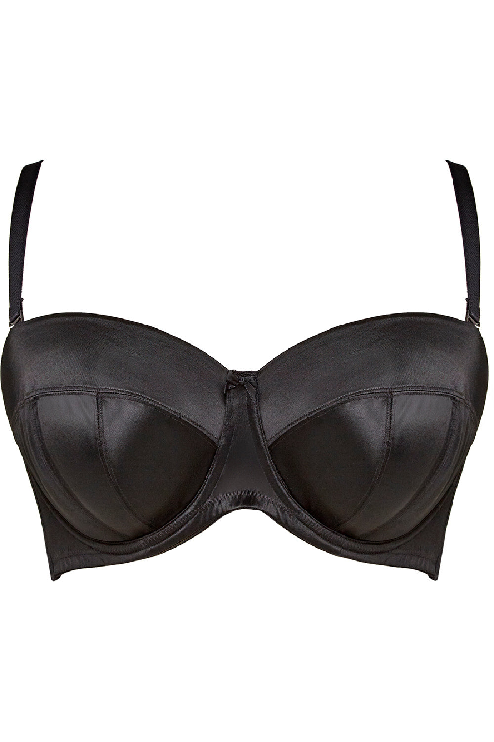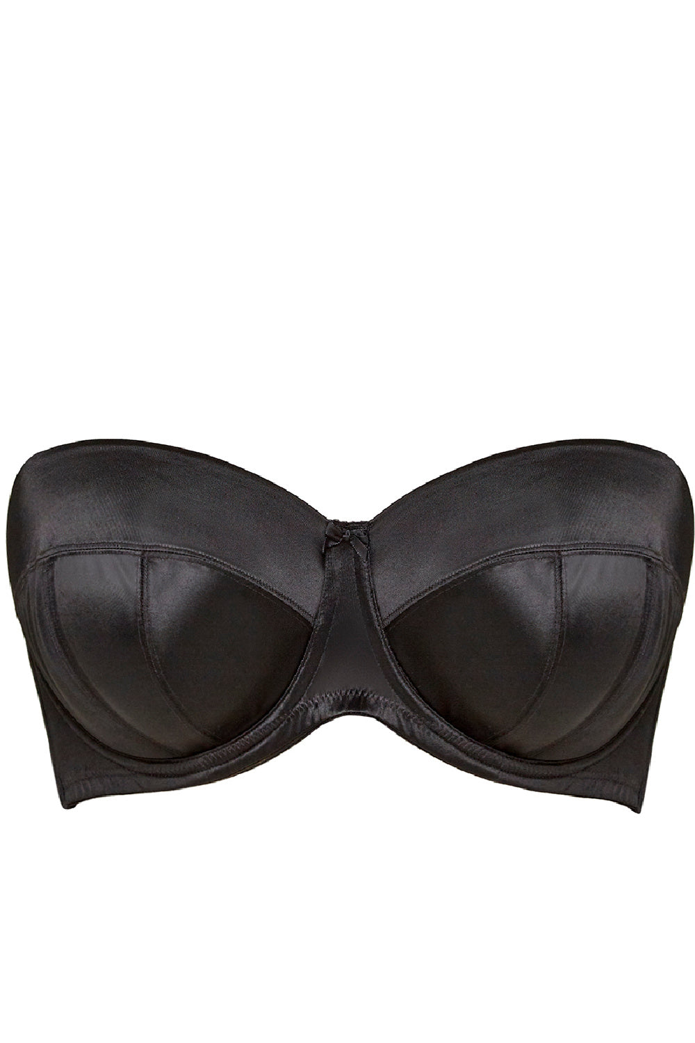 Say hello to your new favourite Dana black strapless bra by Panache Sculptresse. Dana offers a super supportive fit with its 4 piece padded cups that give you coverage and lift, even without the straps. Its double layer wings offer a slightly shaping fit around your back, and the wider hook and eye combined with silicone elastics along the wings ensures you're fully supported and secure.