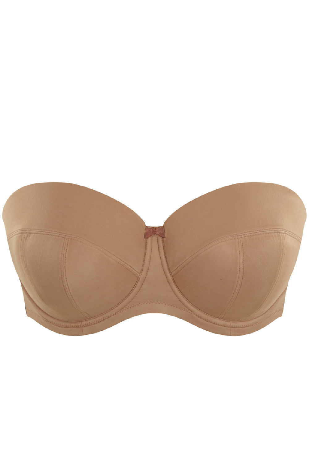 Say hello to your new favourite Dana caramel strapless bra by Panache Sculptresse. Dana offers a super supportive fit with its 4 piece padded cups that give you coverage and lift, even without the straps. Its double layer wings offer a slightly shaping fit around your back, and the wider hook and eye combined with silicone elastics along the wings ensures you're fully supported and secure.