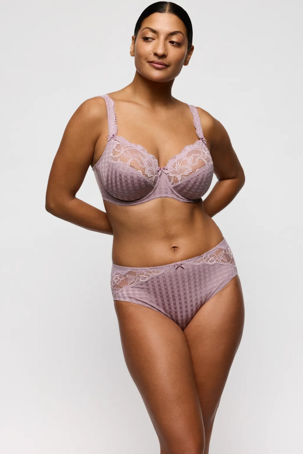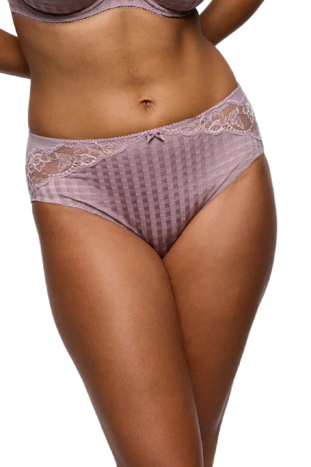 PrimaDonna Madison Full Brief in Soft Sand comes up a little higher on the tummy allowing for a very stylish way of hiding a little extra tummy! Elegant lace strips elongate the leg opening and give an airy slimmed look.