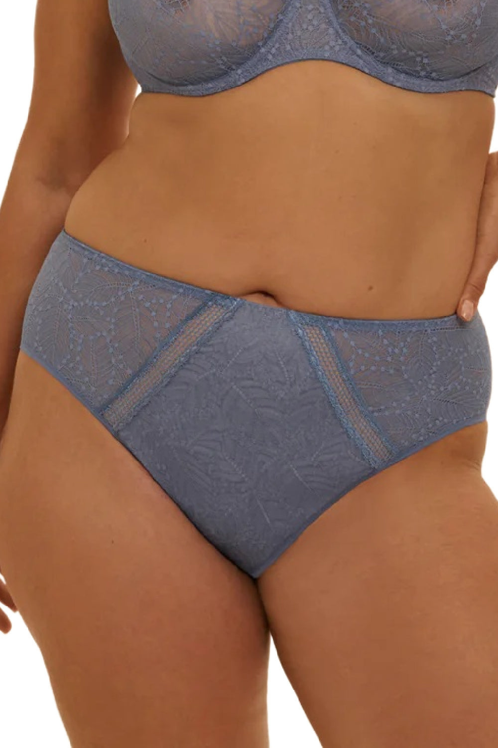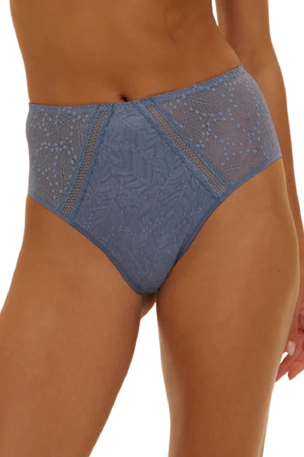 This effortless Simone Perele Comete retro brief in Chambray blue is a delicate, lightweight high waist lace which is invisible under clothing. Everyday and refined.