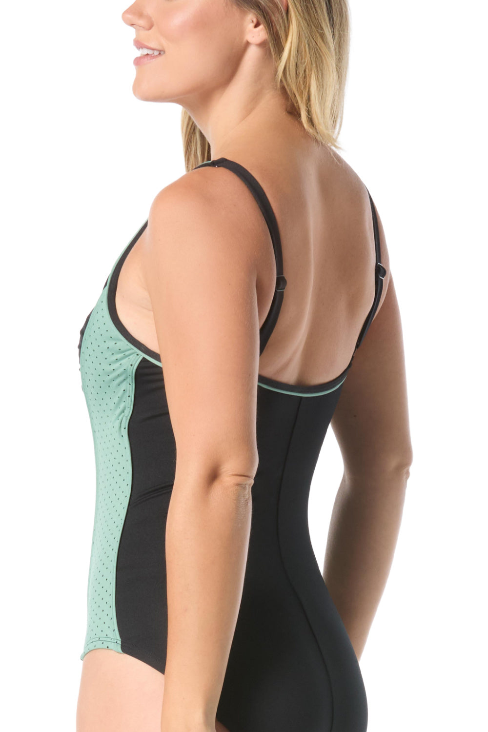 Gabar Color Block Highneck Swimsuit, Willow (G9M461)