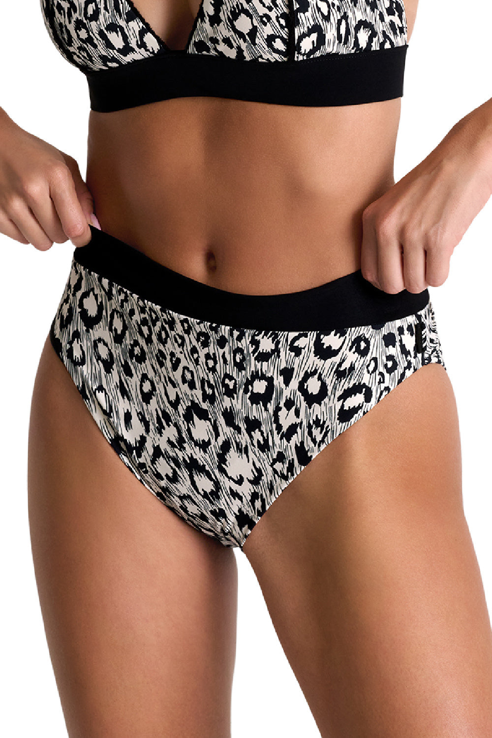 Shan Signature high-waisted bikini bottom in Leo for a retro-inspired look. Perfect for elongating the silhouette it pairs beautifully with any type of top.