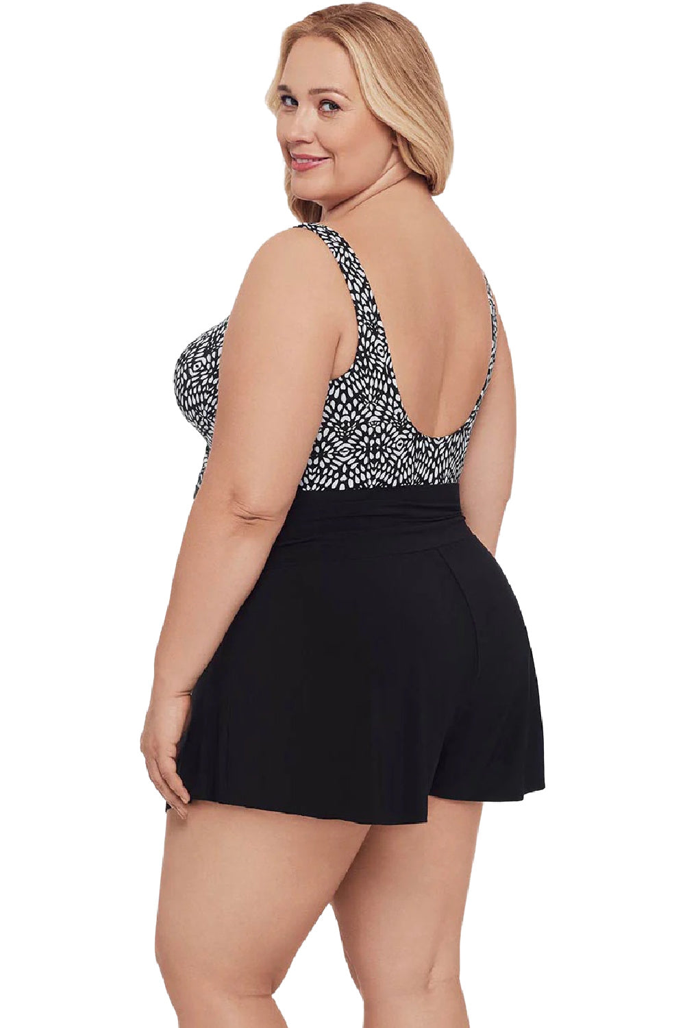 Trimshaper Plus Balinese Block Rebecca romper in black/white has everything you need to get the swim look you want. Discover the confidence that comes from a well-fitted, flattering swim piece.