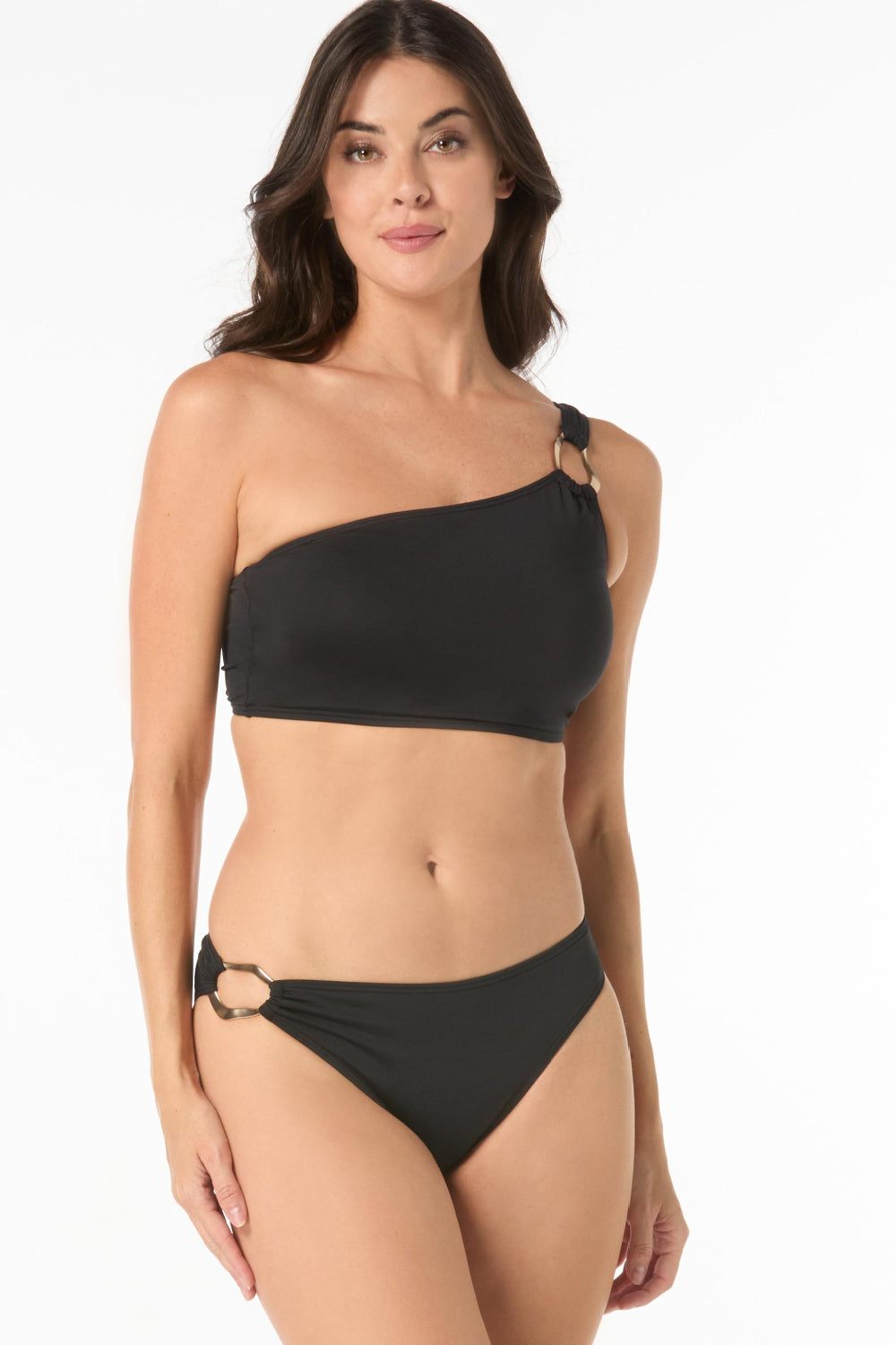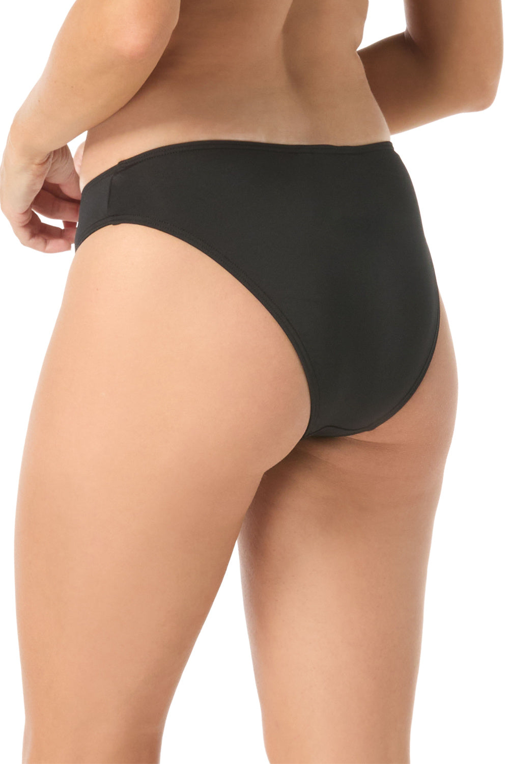 Turn heads in this bold Carmen Marc Valvo bikini bottom in black perfect for lounging poolside or soaking up the sun in style.