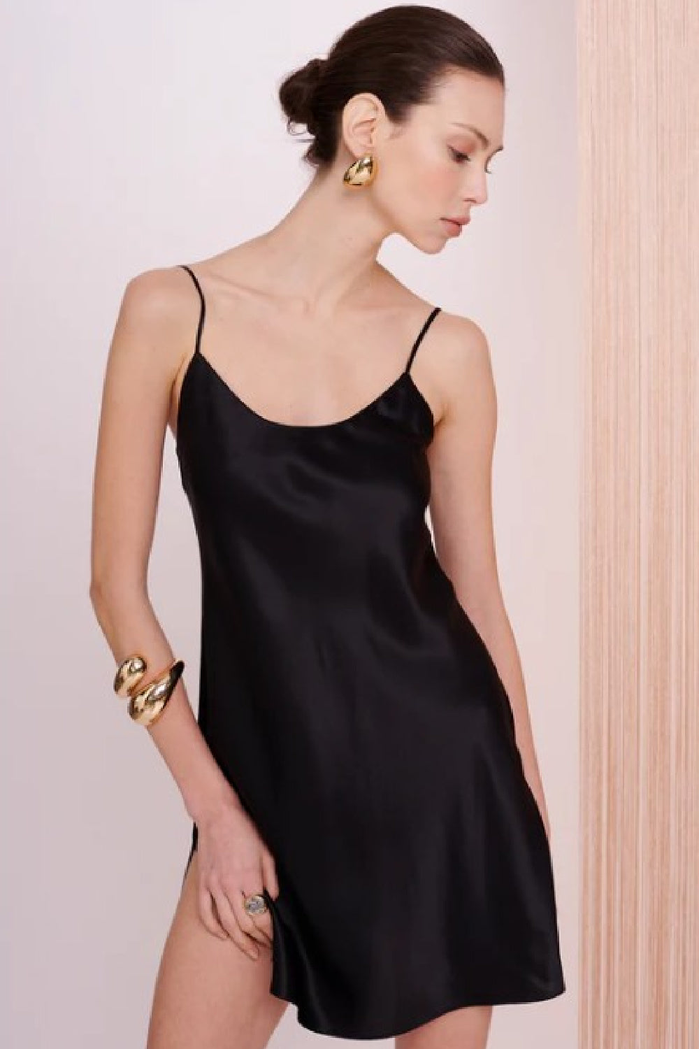 Mini dress in pure silk in black with slit by Eva Bitzer Silk