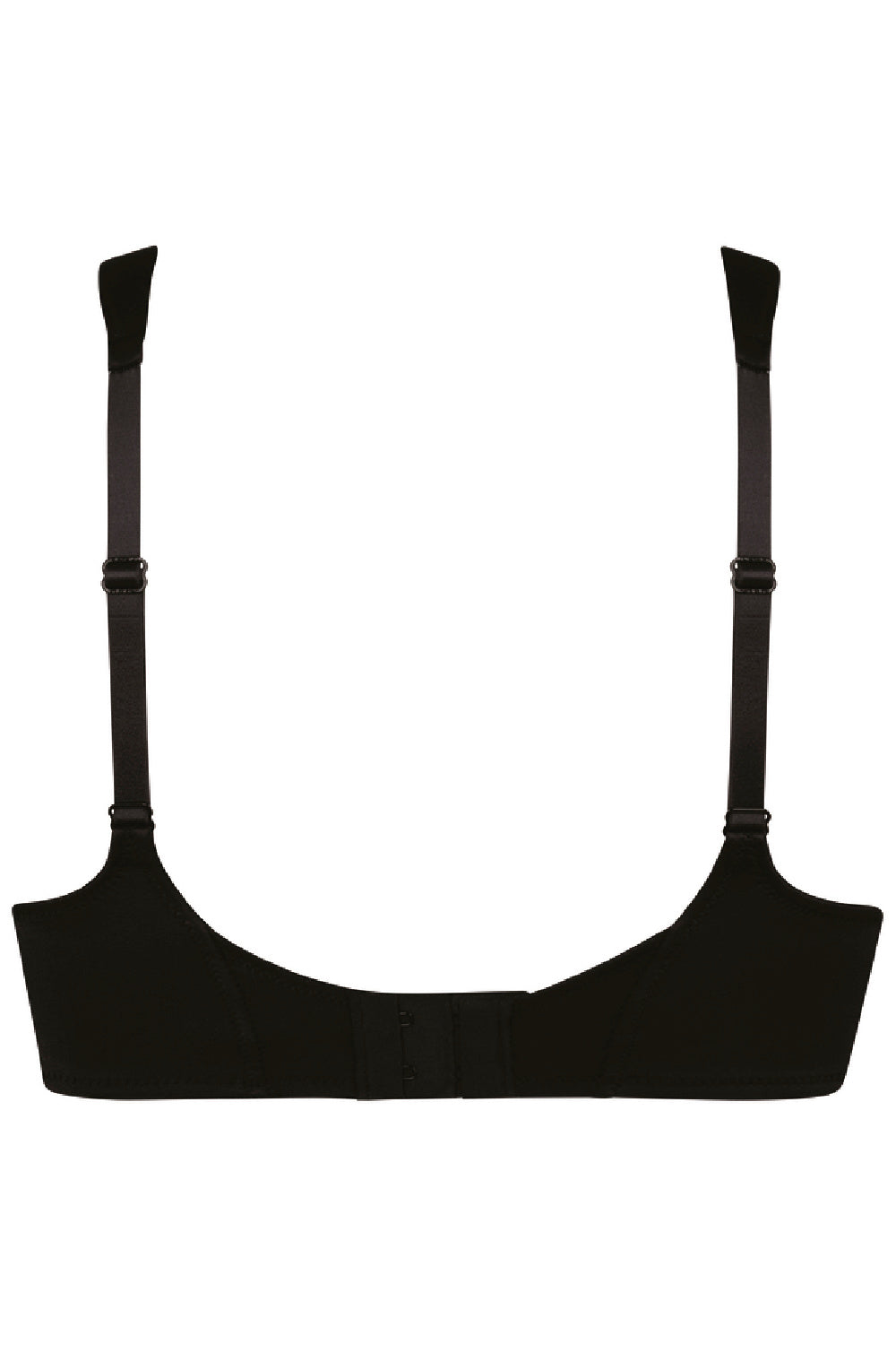 Smart design, perfect fit, and a wonderfully light feel: The Anita Claire full cup T-shirt comfort underwire bra in black combines breathable, pre-shaped spacer cups with a stable frame. It provides excellent support, even in larger sizes. A reinforced power tulle back and wide, softly padded comfort straps ensure stability. A decorative ring at the center adds a modern finishing touch.