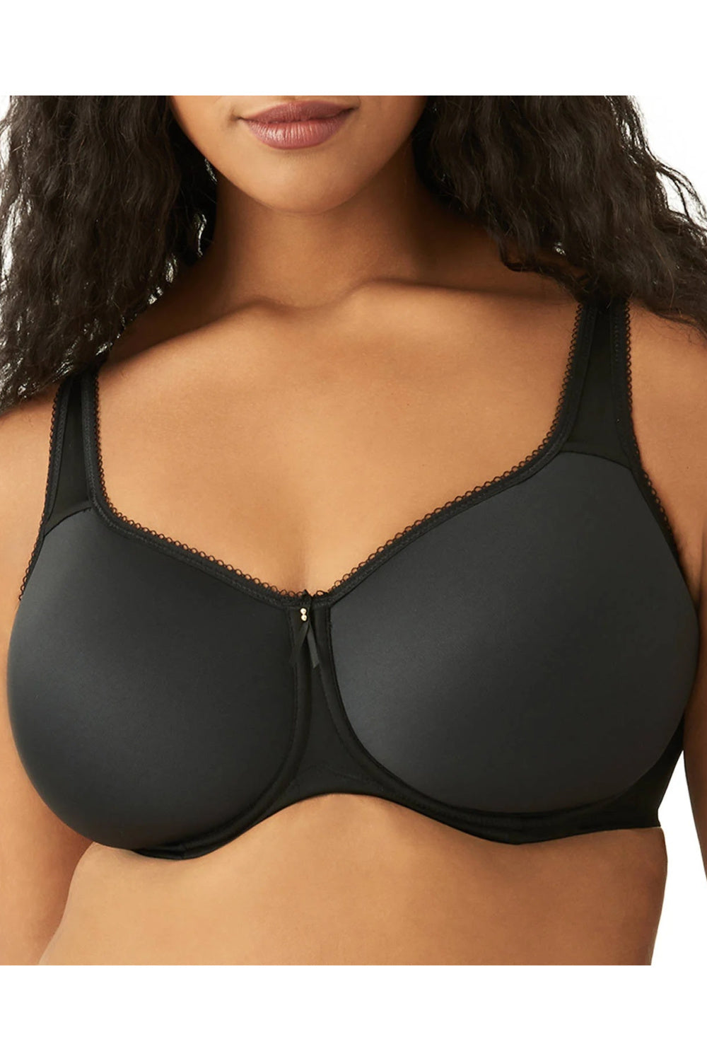 Wacoal Basic Beauty spacer underwire T-shirt bra in Black offers great support for all-day comfort. The seamless spacer cups provide more opacity than an unlined bra while giving you a rounded shape and a smooth look under clothes.
