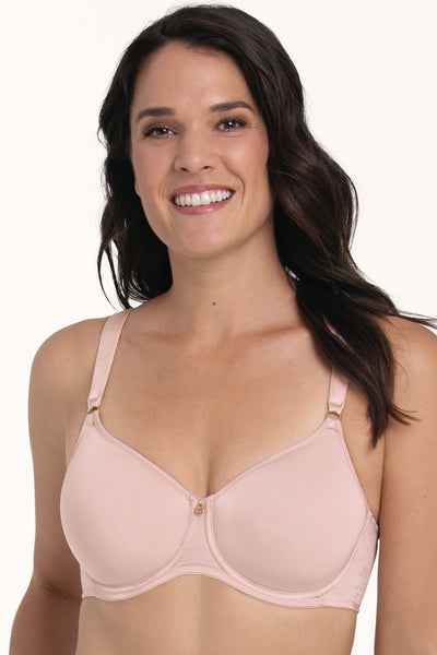 Full-coverage bras should lie flat at the centre front, the straps shouldn’t dig in, and the cups should encapsulate the breasts without gaps.