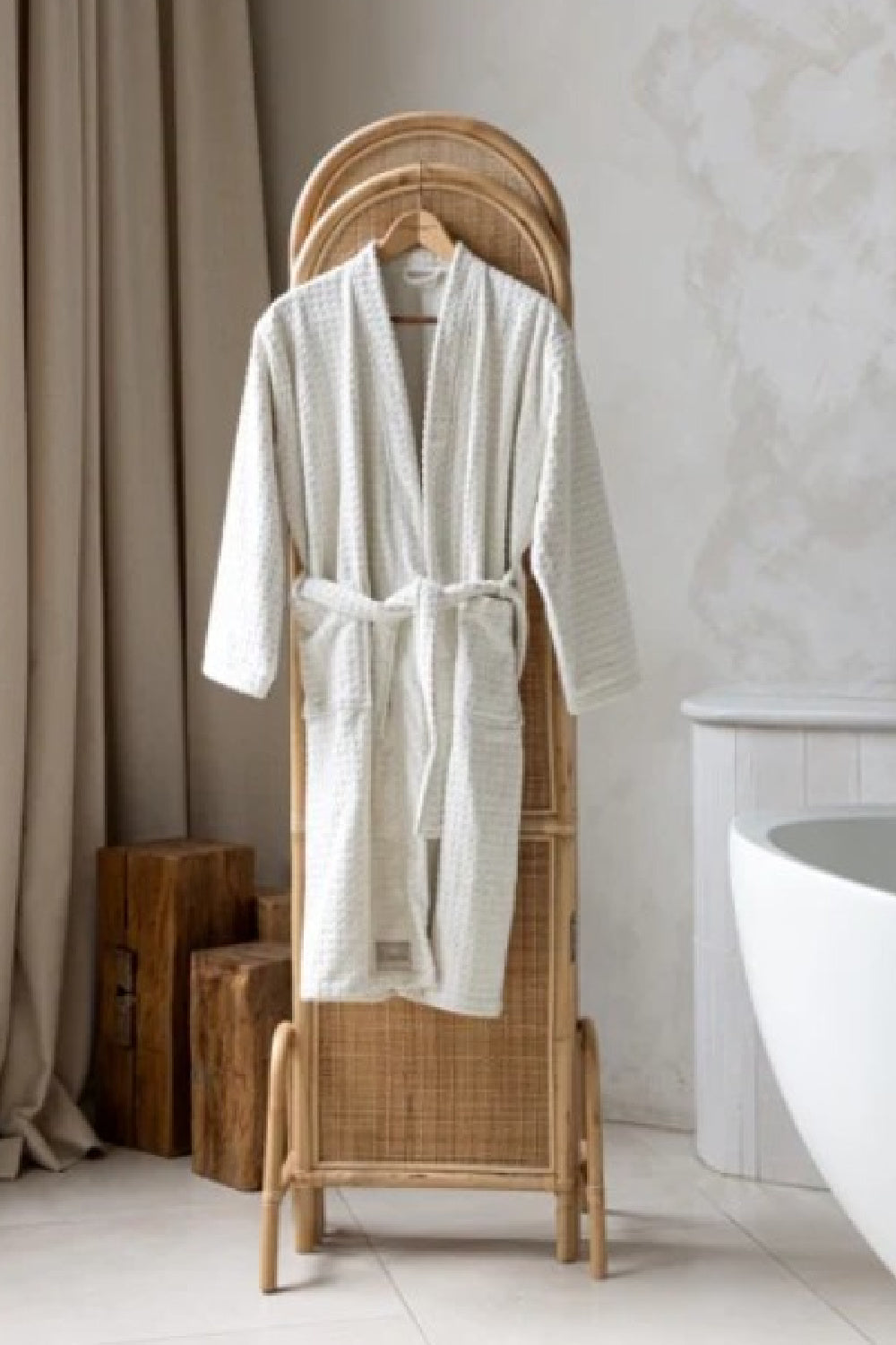 Wrap yourself in comfort with Bushta Living's ultra-soft everyday bathrobe in star white, crafted from 100% sustainably sourced cotton. Designed for ultimate relaxation, this bathrobe offers a plush feel and perfect warmth, making it an ideal addition to your post-bath or spa routine. A cozy, everyday essential that elevates your self-care routine.