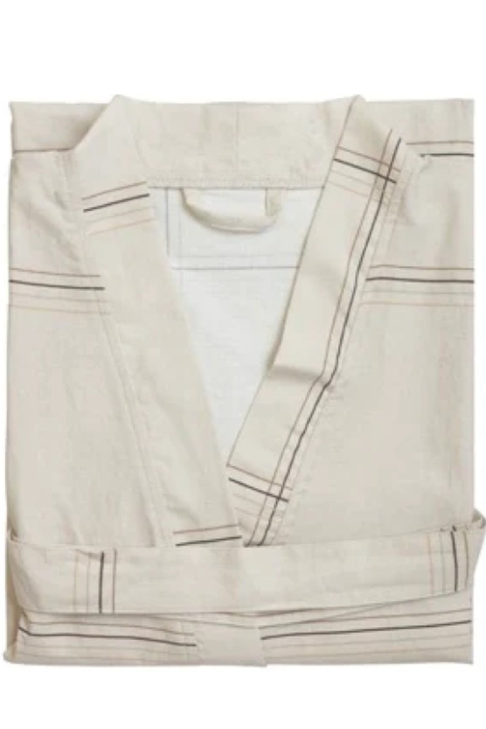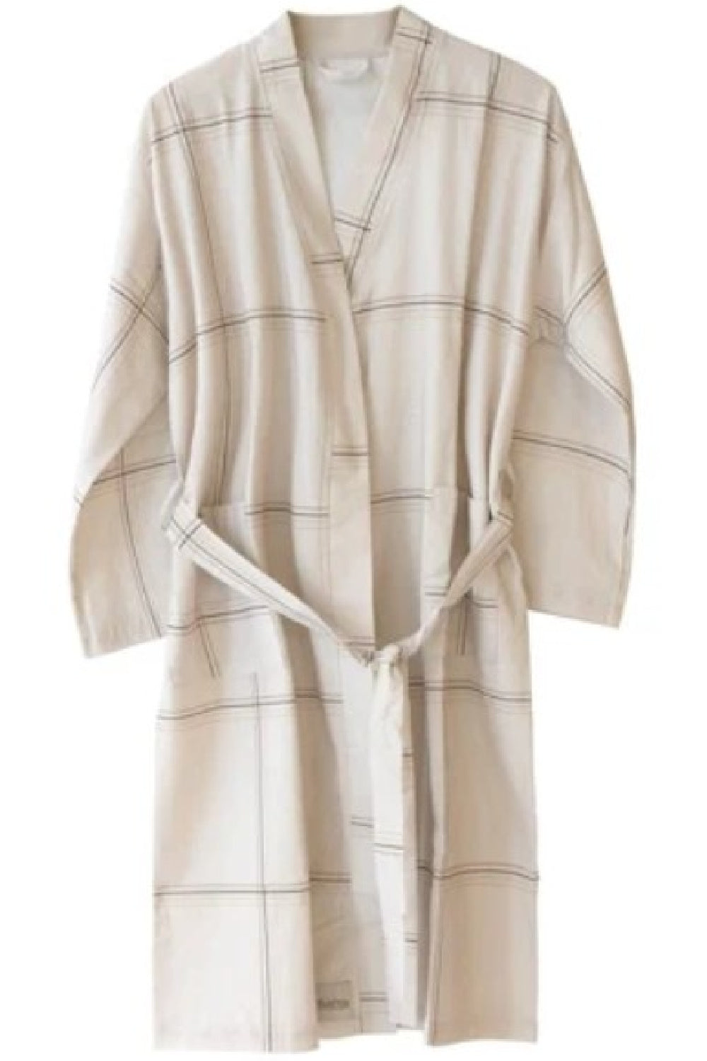 Cool and cozy with Bushta Living's Summer Robe in moon beam, crafted from 100% washed cotton for a soft, breathable feel. Perfect for warm days, this lightweight robe offers a relaxed fit for lounging at home, whether you’re sipping coffee with family or stepping out for a quick morning errand. Designed for year-round versatility, its minimalistic check pattern and unisex style make it a timeless addition to your wardrobe. Ideal for those who value comfort and simplicity in every moment at home