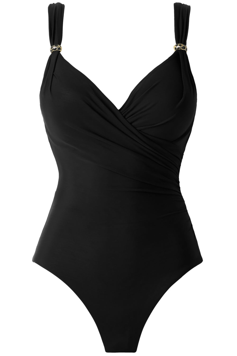 - Cleverly draped fabric conceals tummy