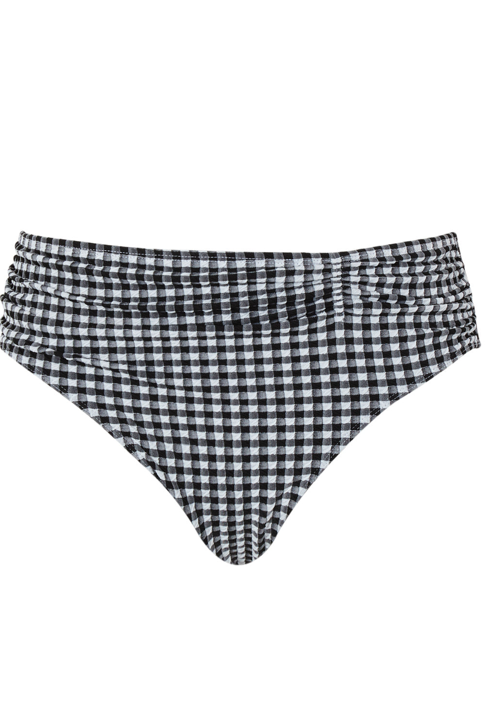 Panache midi gather bikini bottoms in black white gingham pattern perfectly complete the vintage-inspired swimwear look. This brief ensures you are the star of the show this summer!