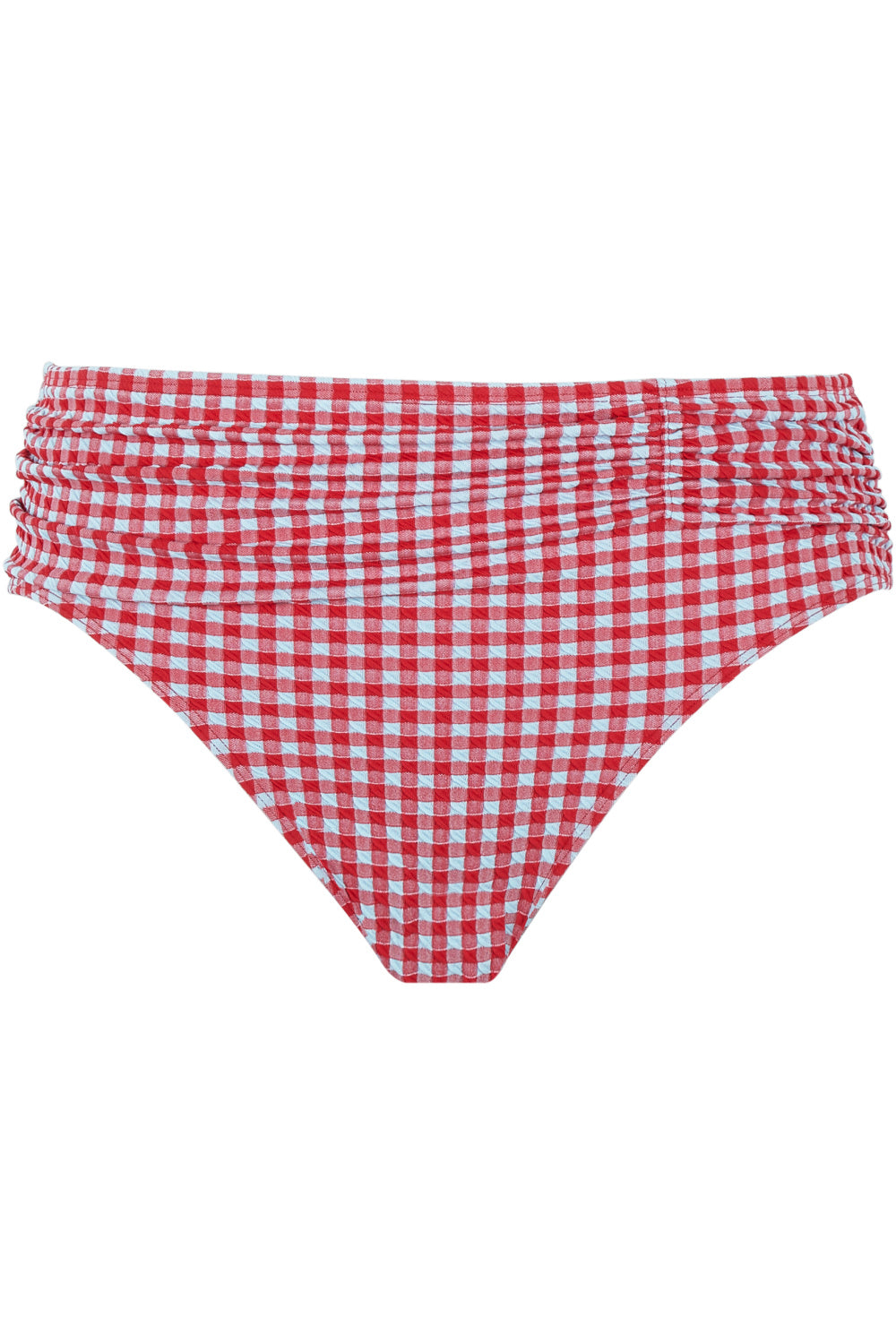 Panache midi gather bikini bottoms in red white gingham pattern perfectly complete the vintage-inspired swimwear look. This brief ensures you are the star of the show this summer!