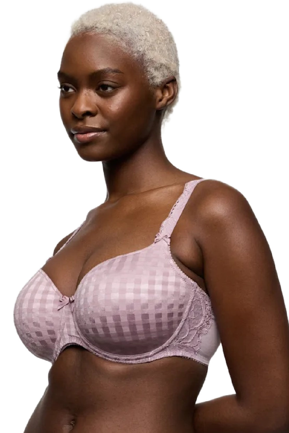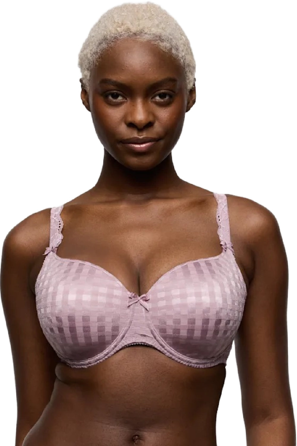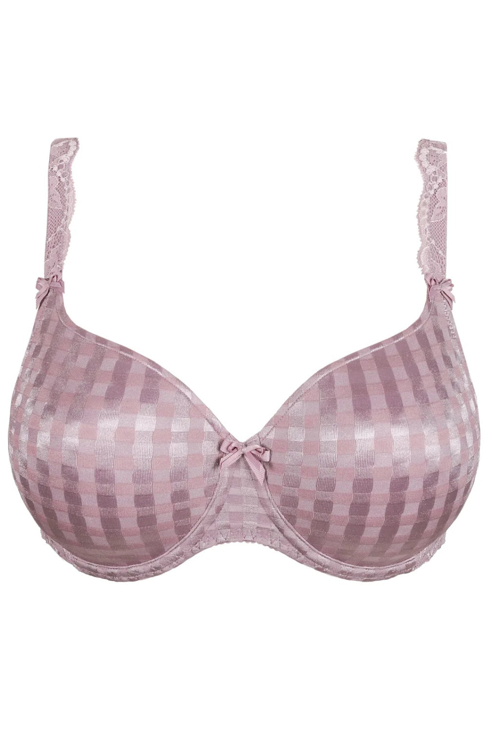 PrimaDonna Madison padded heart shaped bra for cups E to G in Soft Sand gives you a lovely feminine look with a pretty sweetheart neckline. Fresh look gingham fabric make this a lovely T-shirt bra. Seamless moulded underwire cups have light padding to give you a lovely rounded shape.