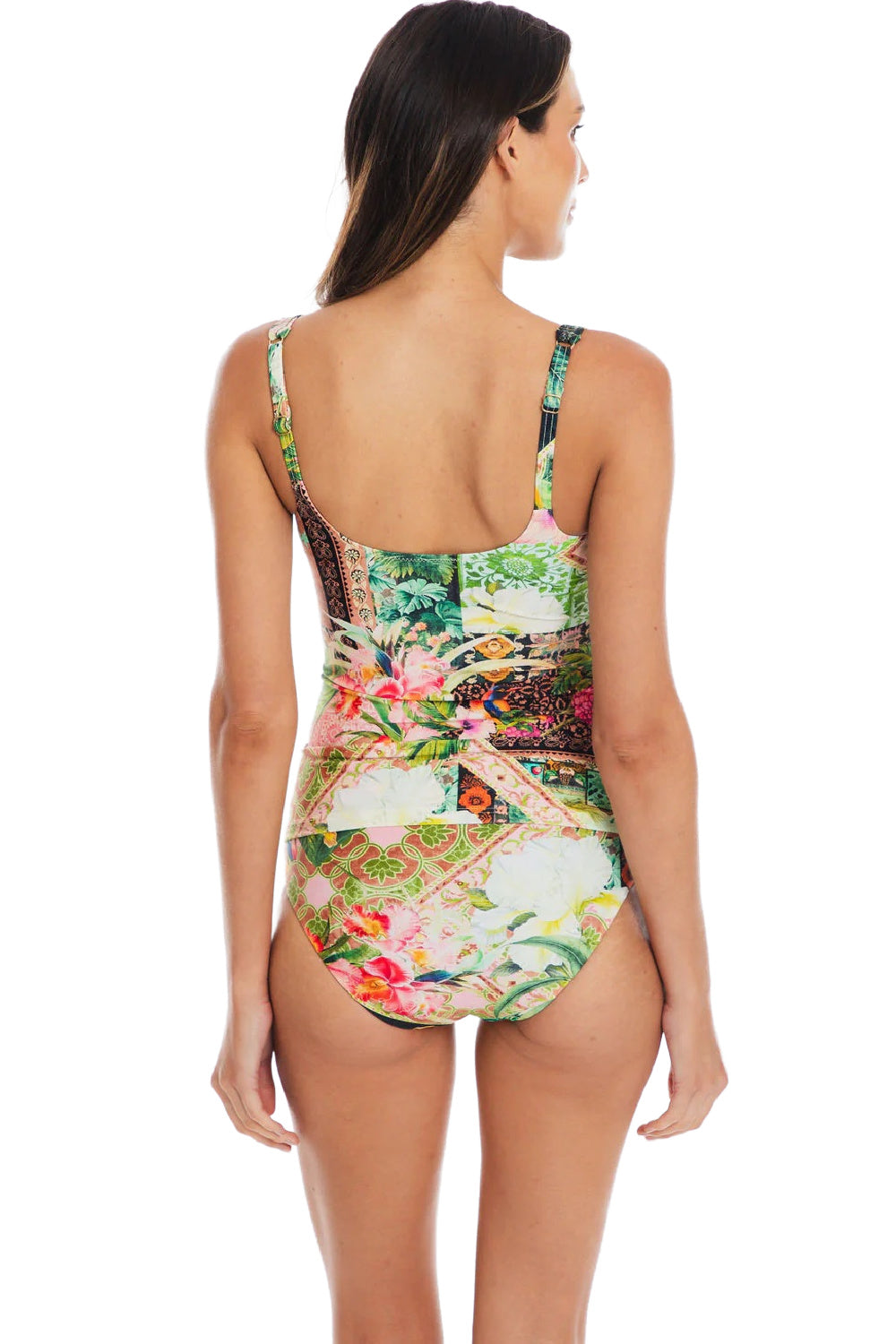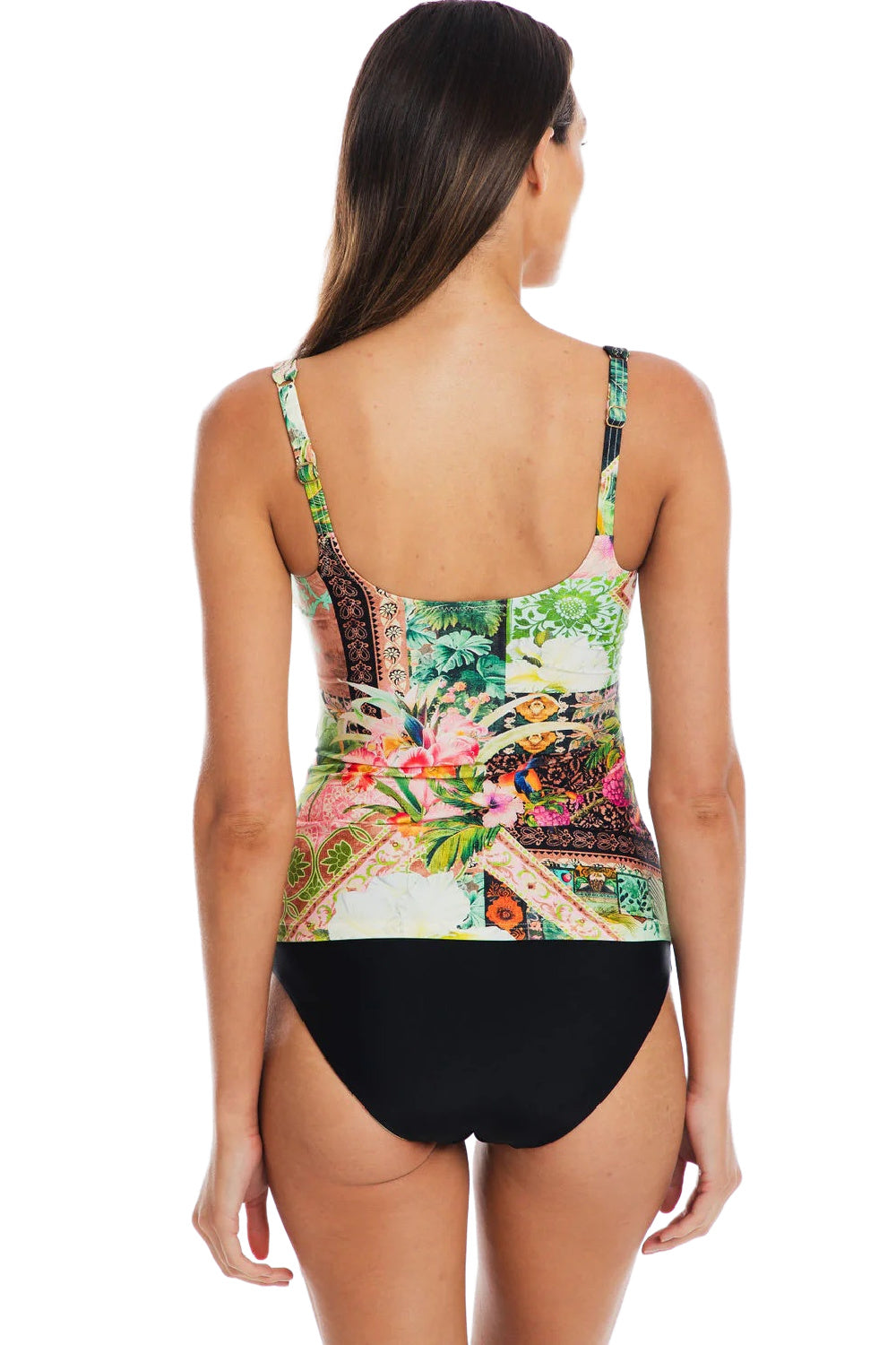 Introducing Togs Floral Fuji Tankini Set, featuring a chic square neckline and supportive underwire at the bust for a naturally flattering shape. Thoughtfully designed with subtle ruching at the tummy for a slimming effect, and paired with matching reversible full brief bottoms for added coverage and comfort, this two-piece swimsuit offers all-day confidence and elegance at the beach or poolside.