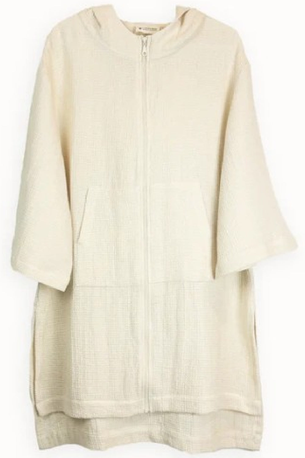 This Pokoloko pure turkish cotton picnic zip hoodie in cream has a waffle texture like Pokoloko's waffle towels, giving it an elegant and luxurious look and feel.