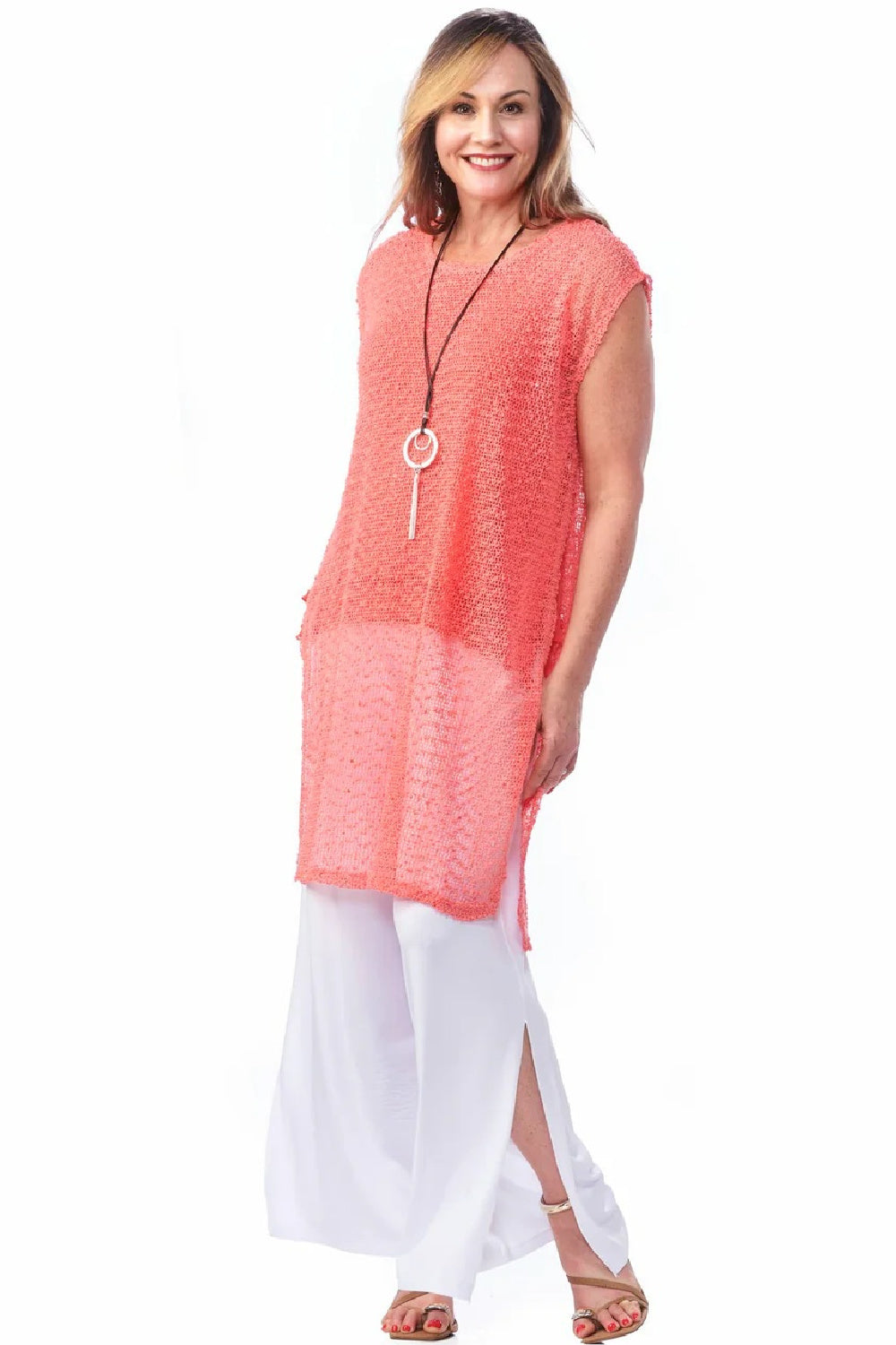 Introducing the Rapz Mesh High Slit Mesh Coverup in sparkle coral, a quintessential piece for the Boho Chic enthusiast. Designed from 100% polyester for a lightweight and airy feel, this coverup is perfect for layering over your favorite swimwear or pairing with a casual ensemble. Featuring high slits that add a touch of allure and freedom of movement, this Canadian-made garment is as versatile as it is stylish. Whether you're lounging by the pool or exploring a seaside market, this coverup brings an effortless elegance to any look.