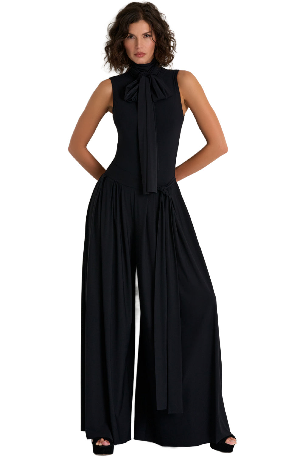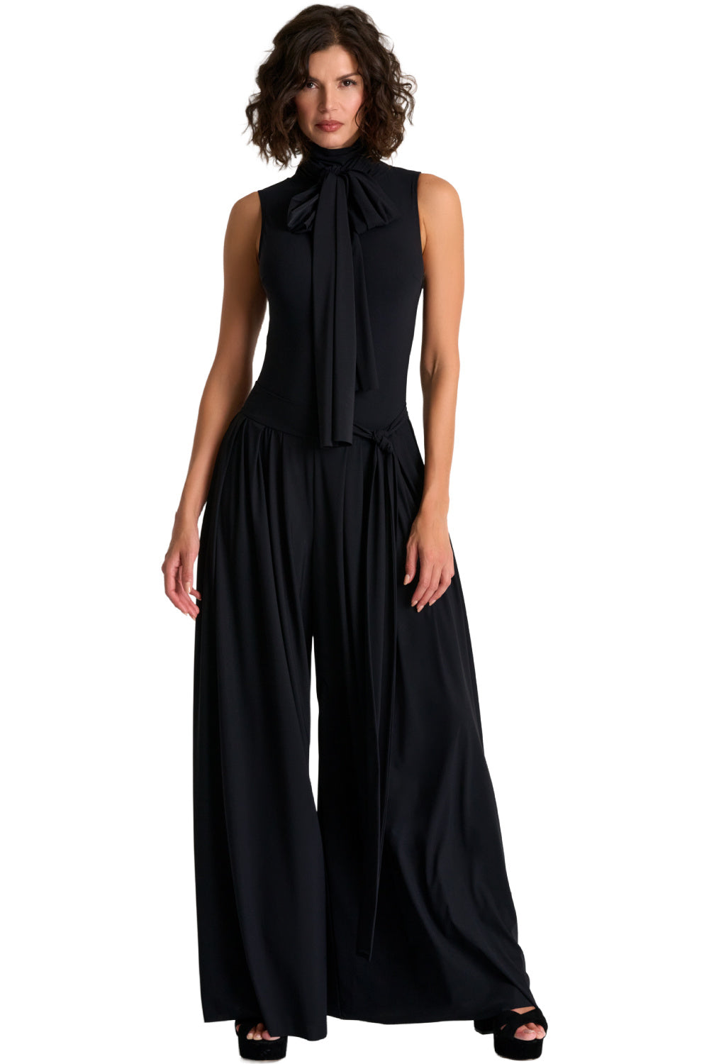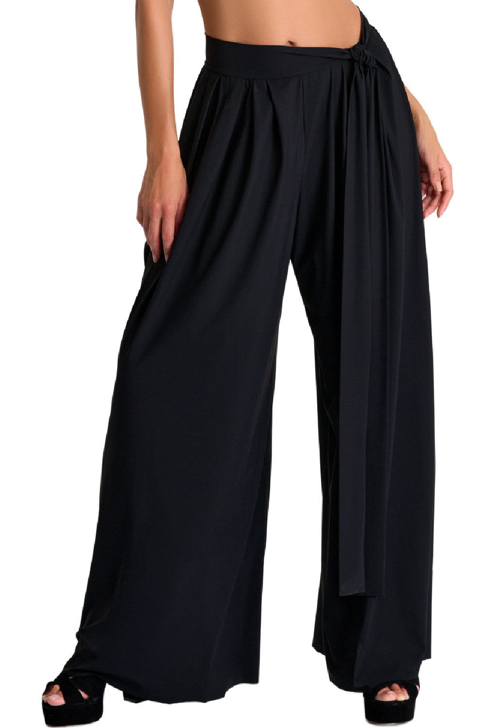 Shan Nelly wide-leg palazzo pants in black designed for graceful, elegant movement. The flowing silhouette embodies effortless sophistication and comfort.