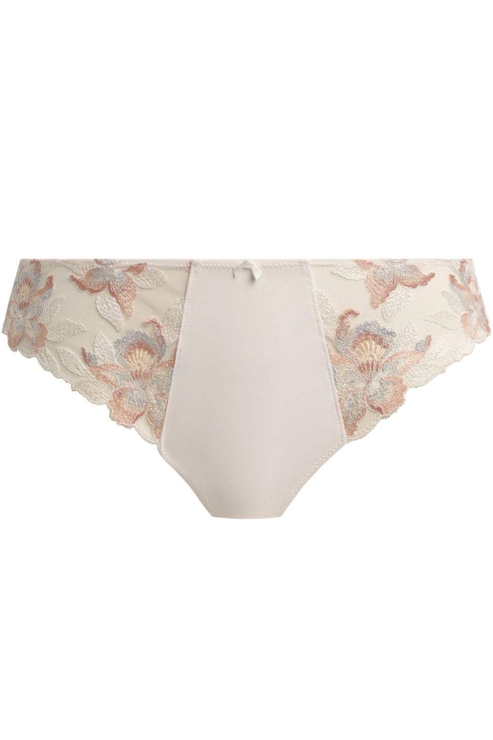 Elevate your essentials with Fantasie Magdalena Thong in Ivory. Featuring luxurious multi-tonal embroidery with lurex detail at the front, bringing together comfort and elegance. Crafted from super soft, clean-cut fabric that ensures a second skin feel and a no VPL finish under clothing.