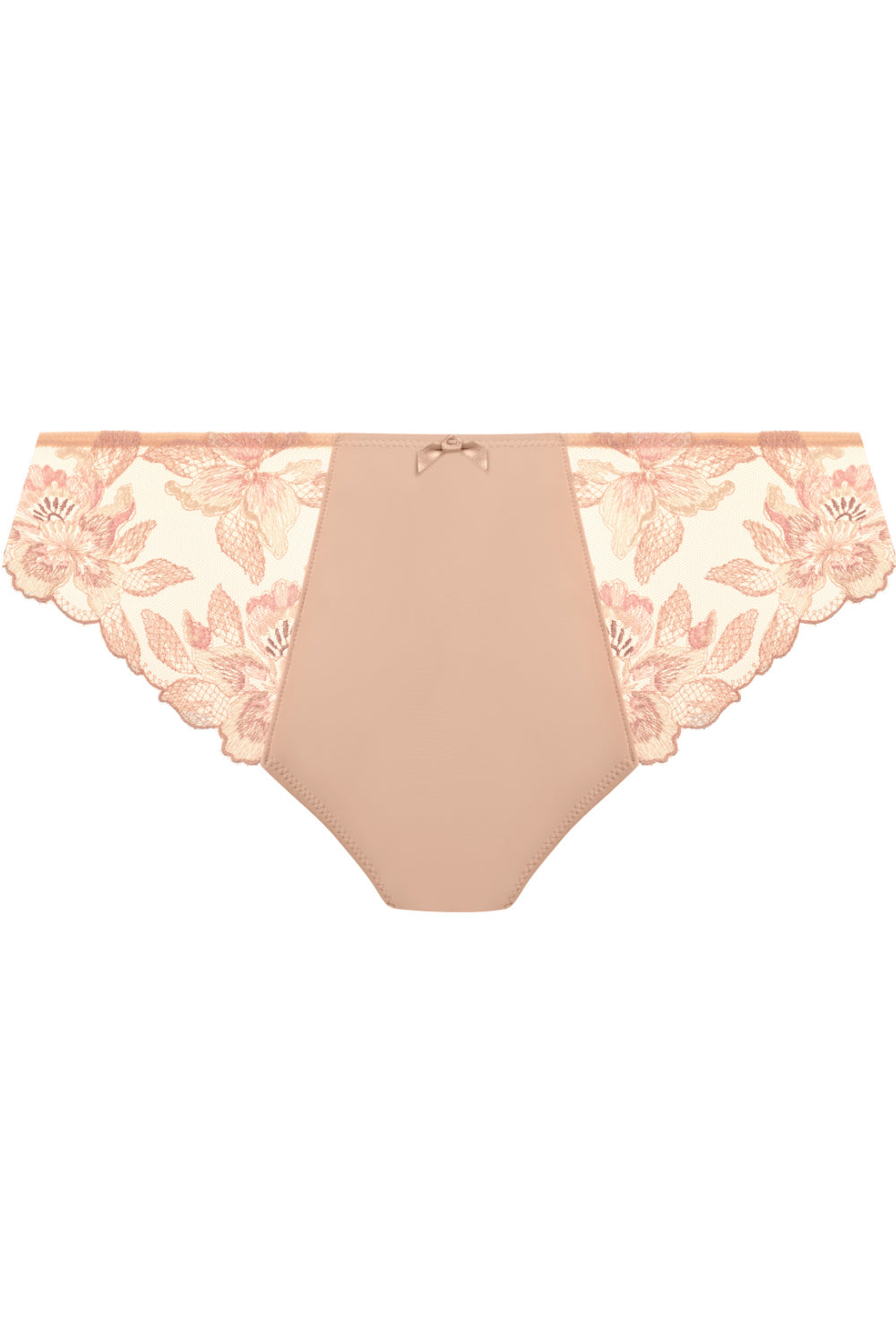 Elevate your essentials with Fantasie Magdalena Thong in Natural Beige. Featuring luxurious multi-tonal embroidery with lurex detail at the front, bringing together comfort and elegance. Crafted from super soft, clean-cut fabric that ensures a second skin feel and a no VPL finish under clothing.