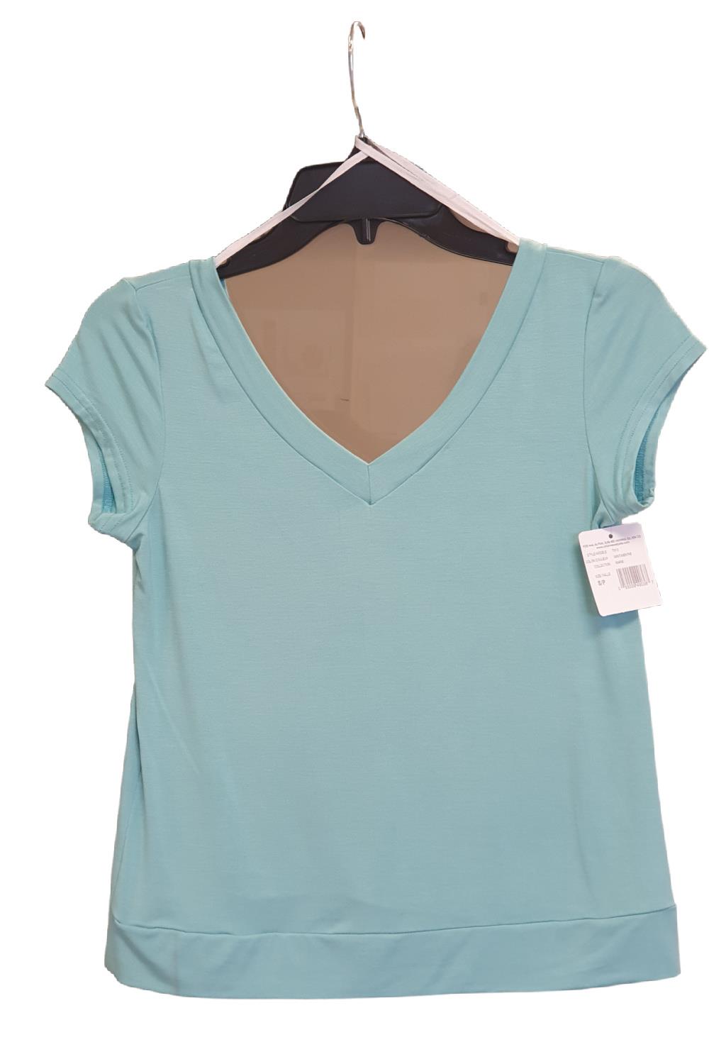 Arianne Marie V-neck top in mint with a banded hem is a classic short-sleeve top made in a soft, breathable, stretch fabric that keeps you cool and comfortable. This beautiful top goes with any outfit.