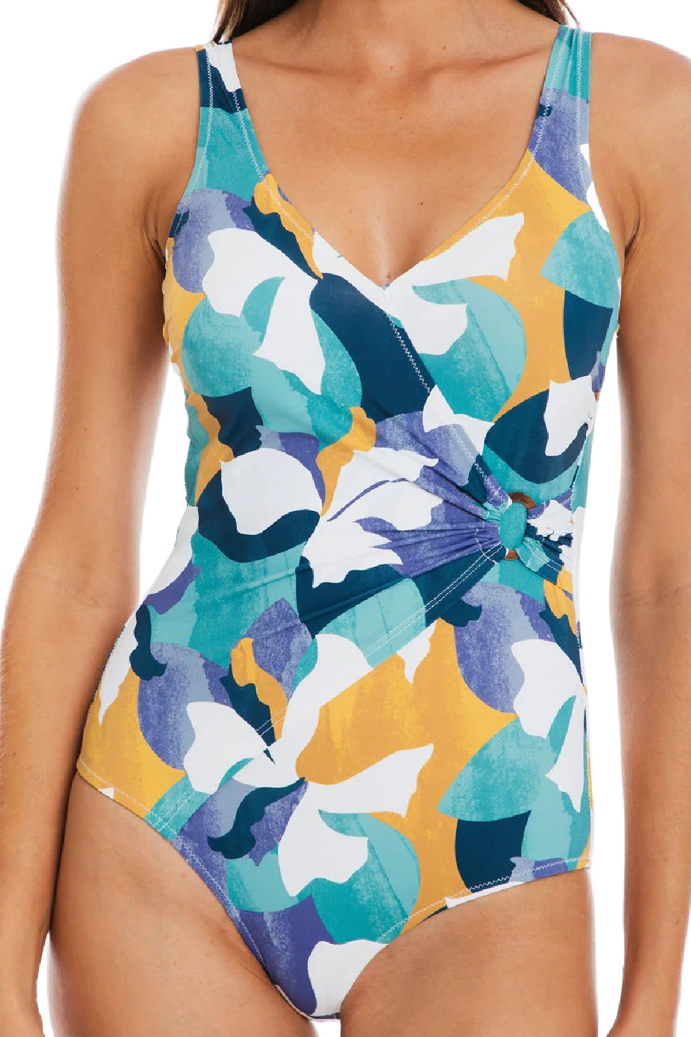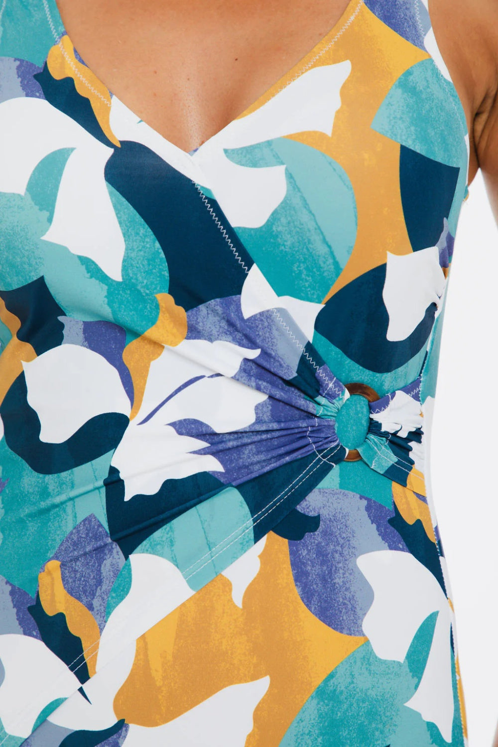 Togs Newport crossover one-piece swimsuit with ring detail. This elegant swimsuit features cross over design with a flattering silhouette that enhances your natural curves. Designed with wire-free support, it offers both comfort and freedom of movement, making it perfect for any water activity.